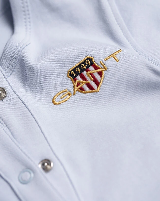 Crafted in a soft cotton, these pajamas feature our ’80s-inspired Archive Shield graphic embroidered at the chest. It is complete with a snap button front for easy dressing.