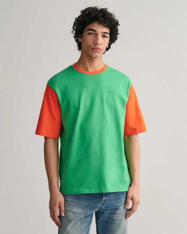Crafted in durable, heavier-weighted cotton, this T-shirt has an oversized fit for a laid-back look. The contrast-colored sleeves and neck tape give it a unique, elevated look and can be worn as a layering piece or on its own. This garment is intended for an oversized fit. For a closer fit, we recommend sizing down.