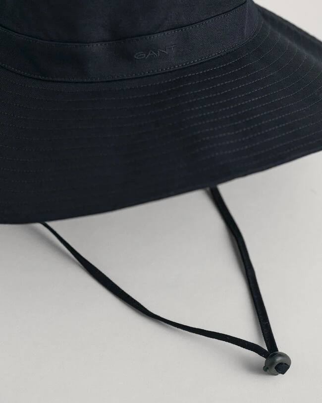 Crafted in 100% cotton twill, this sun hat is your new season accessory. Featuring a long brim, it has a drawstring with an adjustable stopper and classic GANT embroidery at the front.