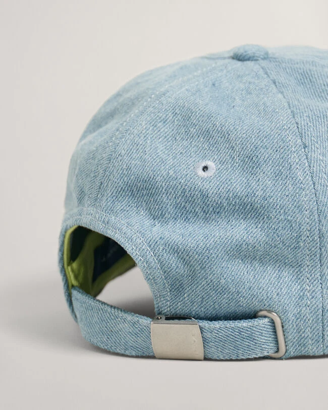 Made of structured denim with an adjustable strap, this cap is a versatile complement to any casual look. It is detailed with a tonal G embroidered badge and an engraved silver metal clasp at the back.