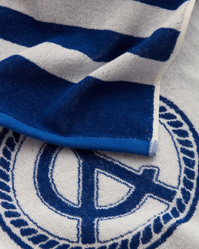 Designed with yarn-dyed nautical stripes and a new seasonal graphic in jacquard, this soft terry beach towel is the perfect summertime towel for pool days, beach days and more. Cut from 100% organic cotton, it is made with an absorbent and thick 450g/m2 weight.