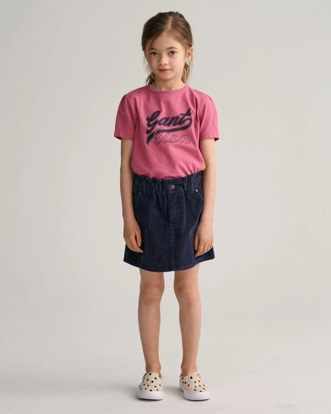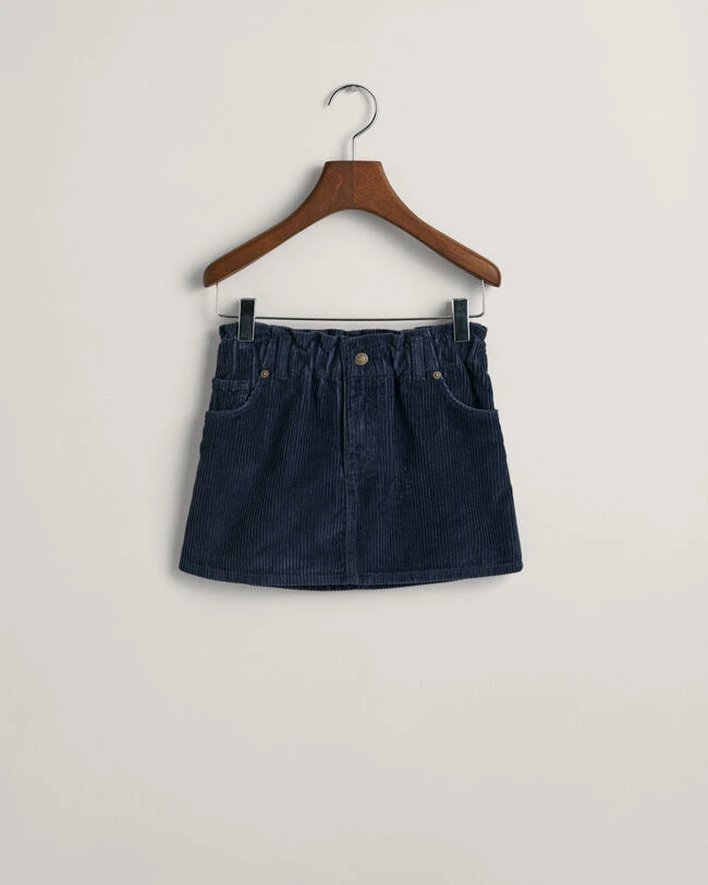 Pretty and playful, this corduroy skirt with a paperbag waist is designed for a regular fit with a mini length. Signature details include a 5-pocket design and classic GANT embroidery at the coin pocket. Style with her favorite blouses and sneakers, or pair it with leggings and knits during the fall.