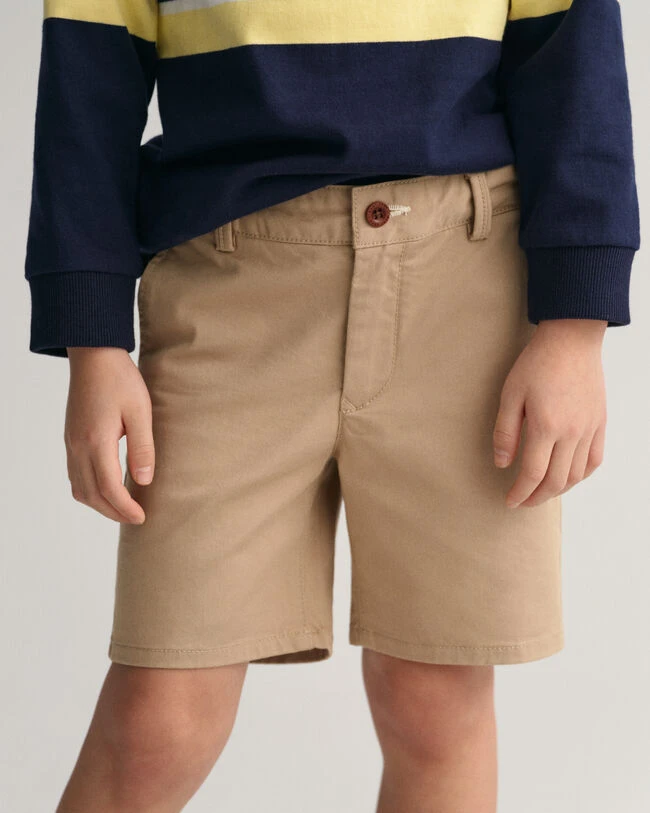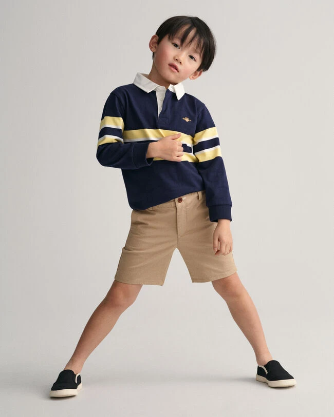 An easy summer favorite, these Kids Chino Shorts are as preppy as the originals. Designed for a regular fit, they feature belt loops, slanted front pockets and double welt pockets at the back. Pair with a tee for a casual look or a button-down shirt for a more dressed-up approach.
