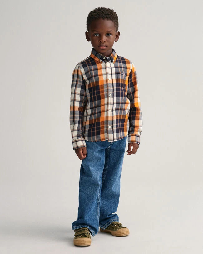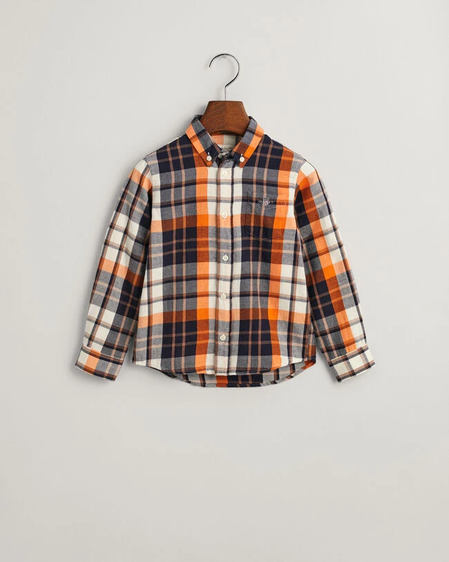 Crafted from a soft cotton flannel, this regular fit, unisex shirt is elevated with a small-scale shield graphic embroidered at the chest. With classic detailing like the button-down collar, chest pocket and locker loop at the back, it bears all the hallmarks of our shirting heritage. Pair with denim, chinos or skirts, depending on the occasion.