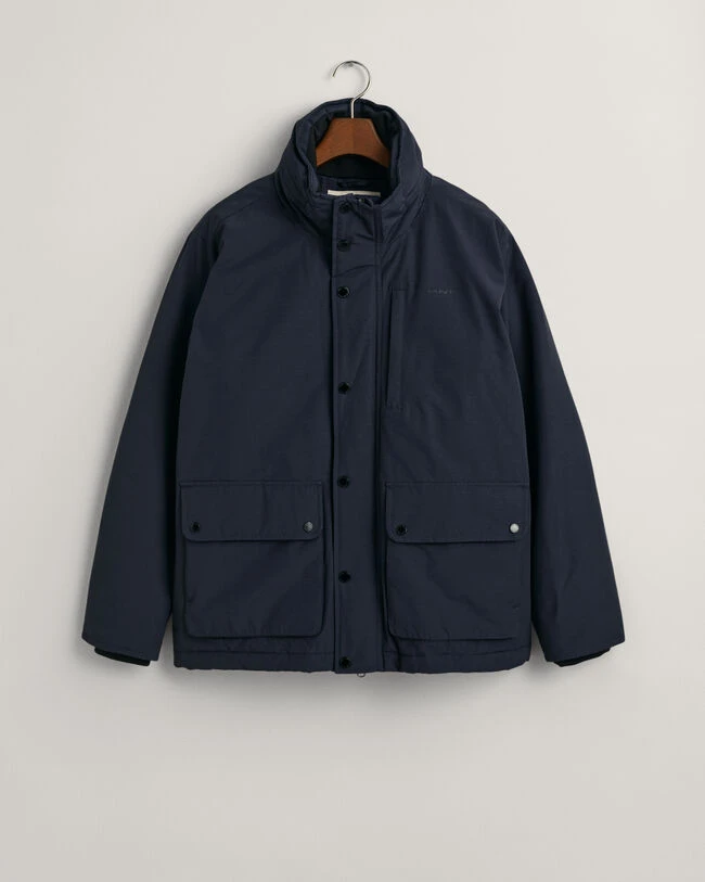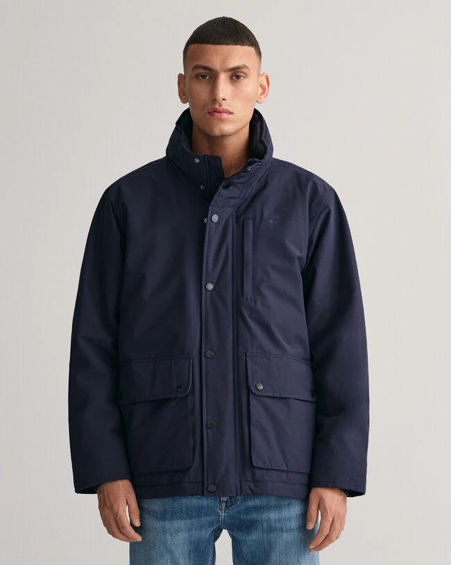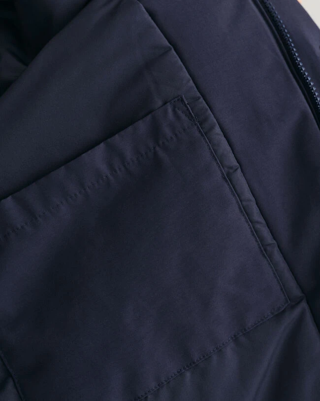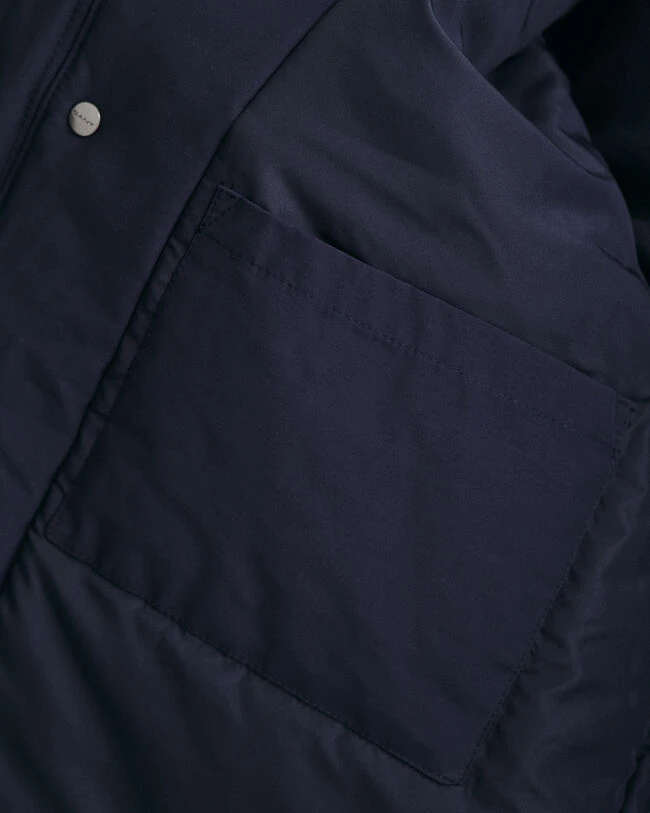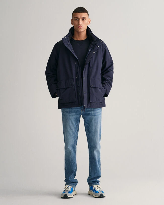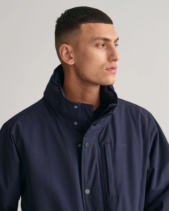 Lightweight and water-resistant, this jacket is cut in a regular fit and features a longer length down to the mid-thigh for maximum weather protection. Detailed with a two-way zipper at the front underneath a press-button closure placket, this jacket serves as a protective outer layer for unpredictable weather.