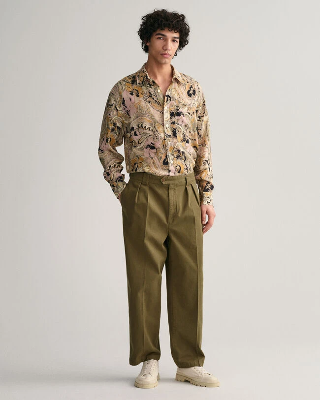 Oversized for a comfortable and relaxed fit, this shirt is adorned with an all-over paisley print perfect for the season. Detailed with a curved hem for fullness and adjustable sleeve cuffs, pair it with tailored pants for a dressed-up casual look. This garment is intended for an oversized fit. For a closer fit, we recommend sizing down.