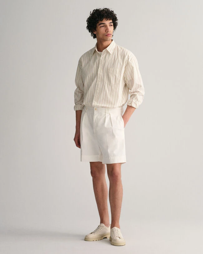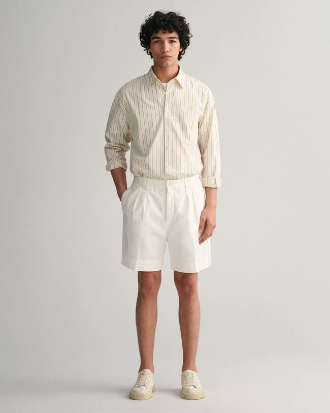 Clean, modern and dapper, these Pleated Twill Chino Shorts are crafted from twill with a hint of stretch for comfort. Featuring front and back pleats, wide belt loops and a cuffed hem, these shorts are perfect for alfresco dining, special occasions and everything in between.