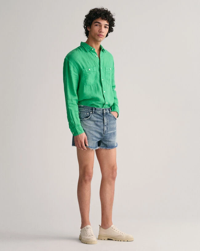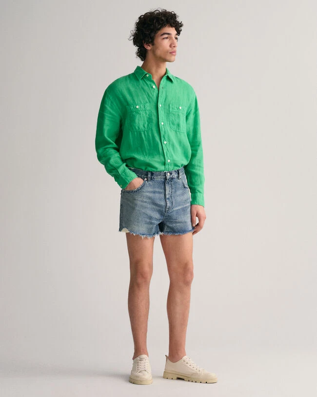 Inspired by raw edges of the ’80s, these cut-off shorts are a vintage-lover’s dream. Washed in an indigo hue with worn effects at the hem, pair them high-cut sport socks and sneakers for a truly retro look.