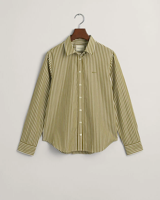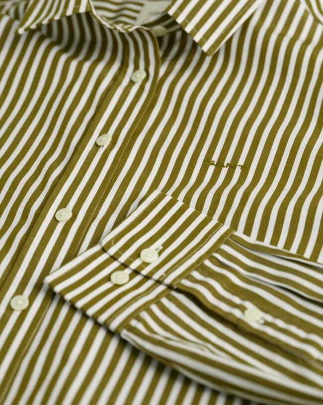 Featuring yarn-dyed stripes on crisp cotton poplin, this regular fit shirt is the perfect casual piece. Details include a point collar, curved hem, embroidery at the chest and our signature box pleat with a locker loop at the back.