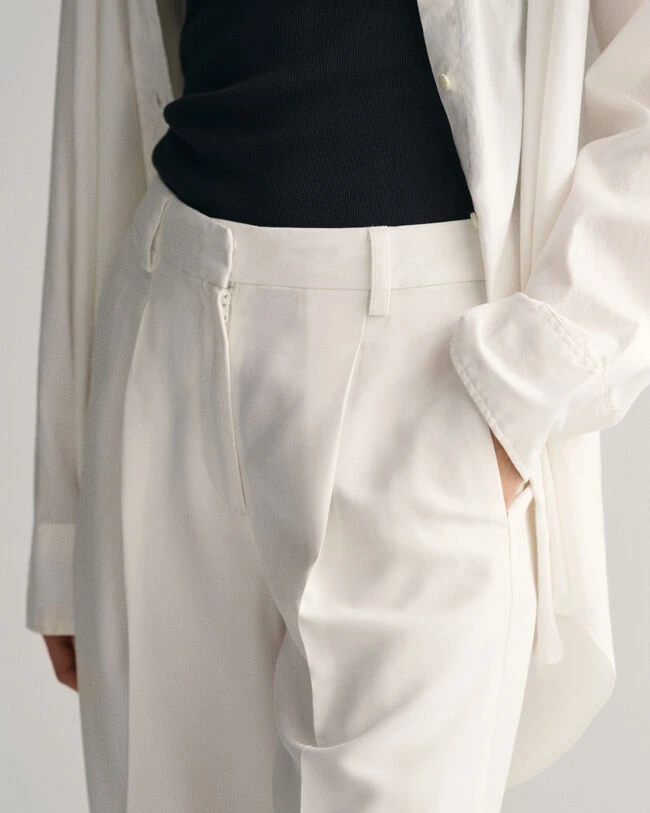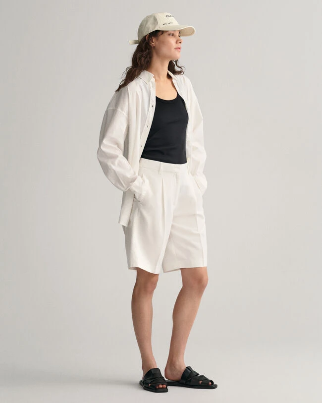 Tailor-made for the warmer months, these relaxed fit shorts are crafted in a premium viscose blend with a soft feel and drape characteristic. Sitting just above the knee in a long-short length, they have a high-rise waist and wide leg. They are complete with single pleat and crease detailing, plus side seam pockets.