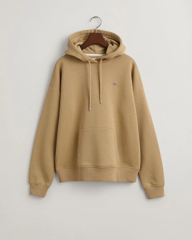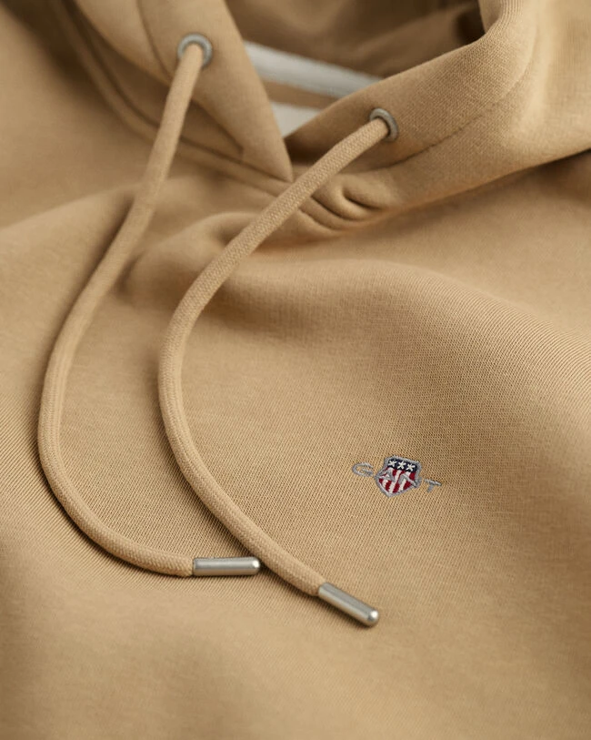 Featuring a small-scale shield graphic embroidered at the chest, this hoodie blends our preppy heritage with contemporary streetwear. Constructed in a soft cotton fleece blend, this jersey hoodie is made for wearing year-round. This garment is intended for a relaxed fit. For a closer fit, we recommend sizing down.