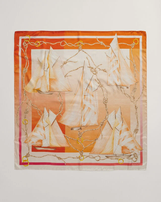Crafted from 100% silk, this scarf features a vibrant sailing print developed by our in-house graphics studio.
