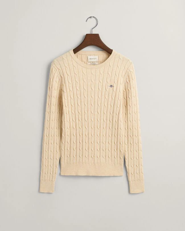 An American sportswear classic, the cable knit sweater has roots with the Aran Islands and Irish fisherman, but has been adored by everyone from Hollywood film stars to boarding school students around the world. Crafted from a soft cotton elastane blend for a slim yet stretch fit, our version keeps it crisp and versatile with ribbed details, a classic crew neck, and our signature shield embroidered at the chest. Plus, in a range of neutrals and vibrant seasonal hues, you can justify one in every color.