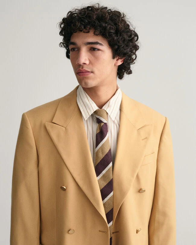 Crafted in 100% silk, this tie features traditional preppy stripes reminiscent of traditional collegiate wear.