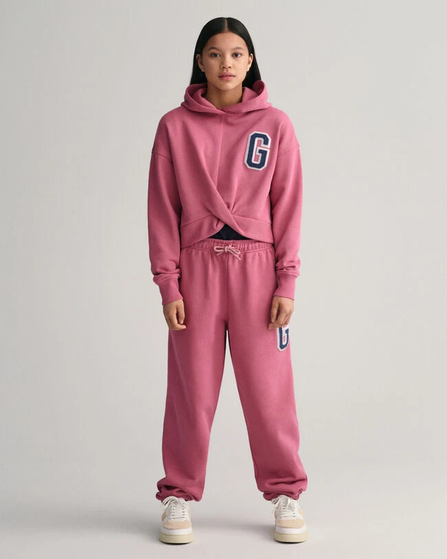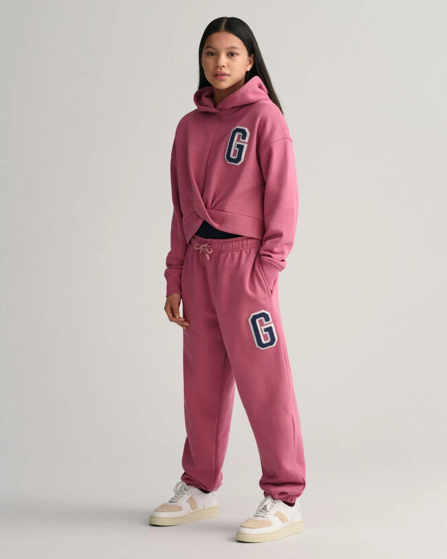 Designed in a cotton-rich polyester blend, these sweatpants are crafted in a relaxed fit with gathered details at the bottom hem. Featuring side pockets and a GANT G emblem just below the pocket, these sweatpants are perfect for going to and from practice or for days on the go.