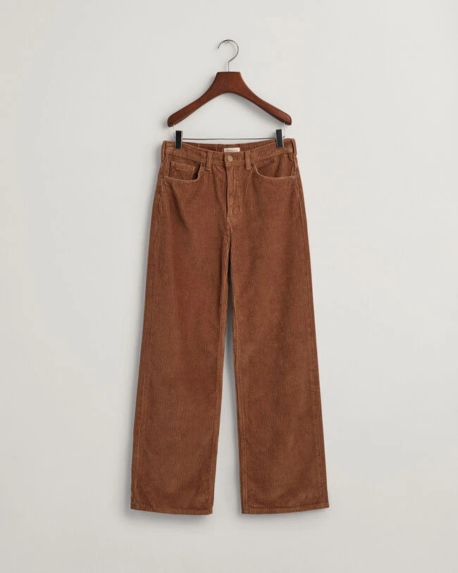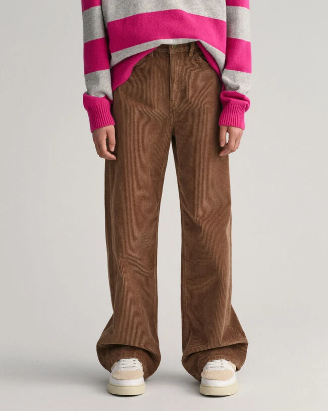 Crafted from soft cotton, these corduroy pants feature a wide leg for a loose-fitting look. Detailed with 5 pockets and GANT embroidery on the coin pocket, these pants are equipped with an adjustable elastic at the waist for a customizable fit.