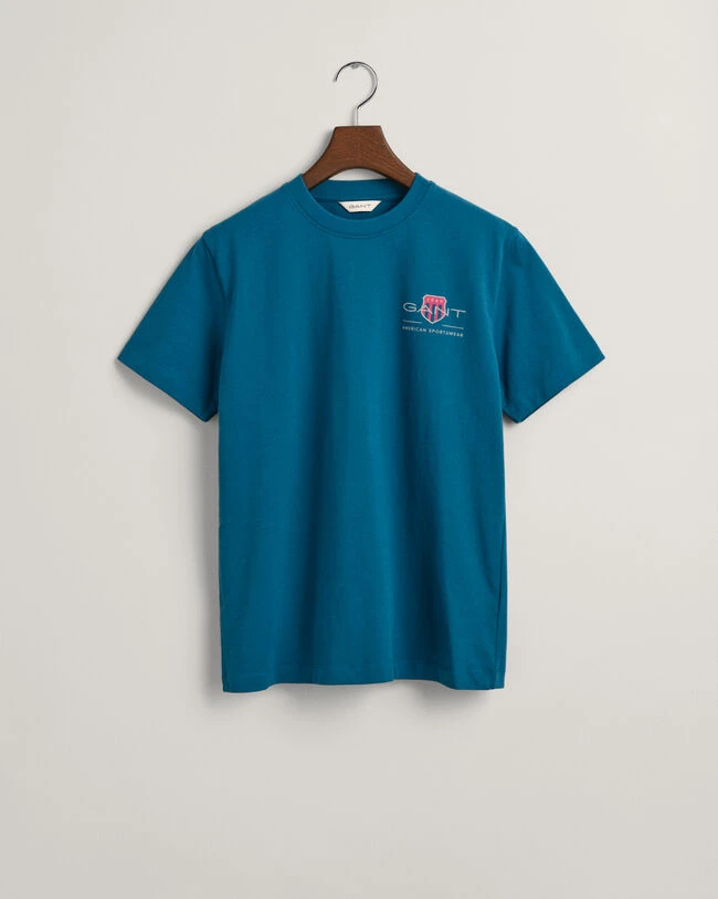 Made from cotton, this T-shirt is cut in a relaxed fit for a laid-back feel. Garment-washed for a faded effect, it features a contrast-color GANT Shield graphic printed at the chest and chunky stitching at the bottom hem and sleeves.
