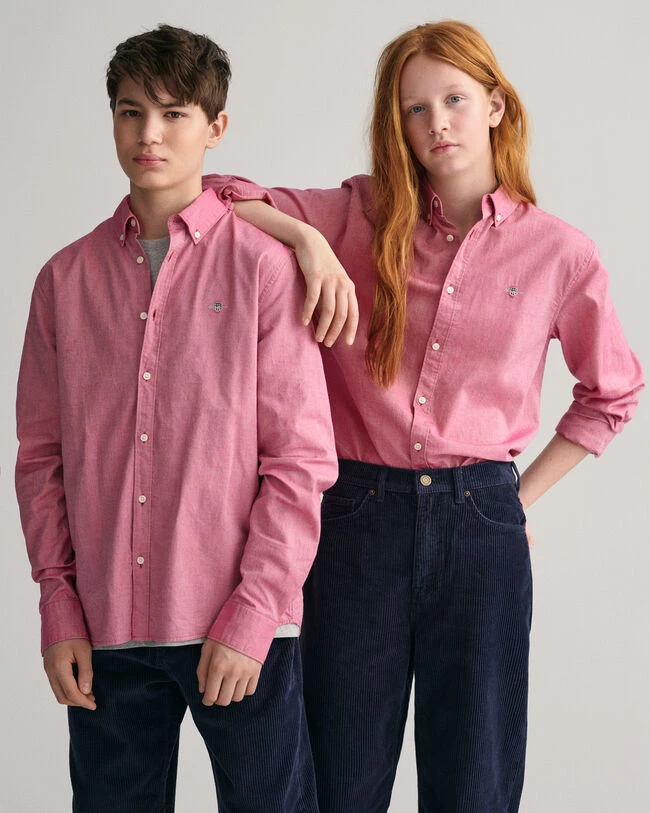 Crafted in cotton, this shirt is equal parts versatile and necessary to any preppy wardrobe. Featuring a GANT Archive Shield logo embroidered at the chest, it is available in a broad range of colors making it easy to justify one for every day of the week.