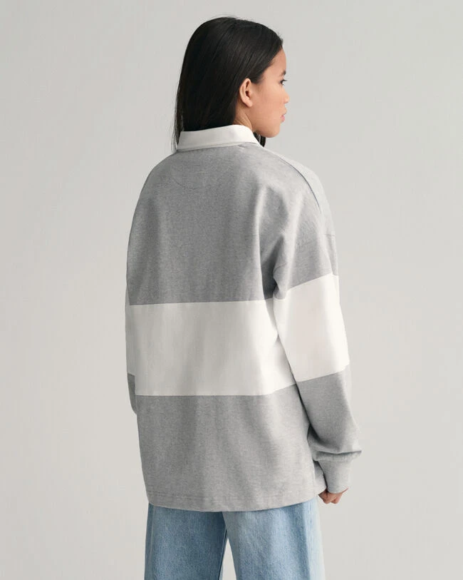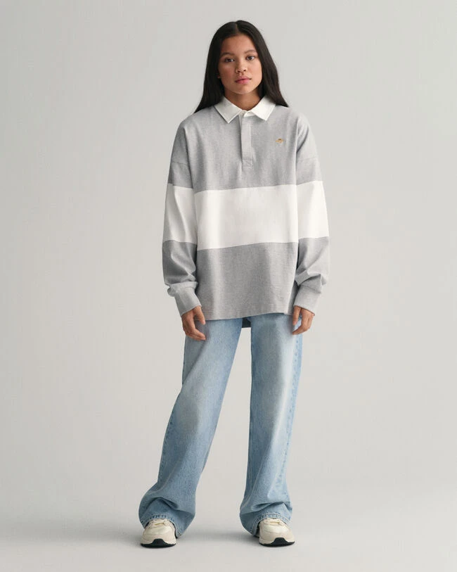 Cut in an oversized style, this preppy classic is crafted in cotton for a soft hand-feel. Featuring a large block stripe in the middle of the garment, pair it with a blazer and tailored trousers for the ultimate collegiate look.